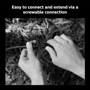 De Philips Hue voedingskabel is speciaal voor al je Philips Hue slimme buitenlampen met een laag voltage. Ideaal om te beginnen met je eigen slimme verlichtingssysteem in de tuin. Op deze 40W voedingskabel kun je tot 35 meter kabel aansluiten om zo verschillende lichtpunten met elkaar te verbinden. De laagspanningvoeding ondersteunt tot 40 watt vermogen. Let op: de totale wattage van de aangesloten laagspanningslampen mag dus maximaal 40 watt zijn. Gemakkelijk zelf installeren: gewoon aansluiten met een stekker, zonder hulp van een elektricien. De Philips Hue 40W voedingskabel kun je gebruiken onder alle weersomstandigheden (IP67-norm). Er bestaat ook een losse 100W voedingskabel van Philips Hue. Daarop kun je nog meer slimme lampen aansluiten tot een maximum van 100 watt.