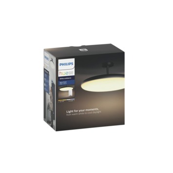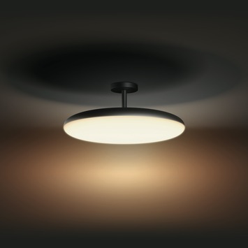 De zwarte Philips Hue Cher White ambiance plafondlamp geeft je op elk tijdstip van de dag het licht dat je nodig hebt. De lamp wordt geleverd met een Philips Hue dimmer switch waarmee je hem kunt in- en uitschakelen en dimmen. Verder heb je keuze uit vier verschillende lichtscènes, die je energie geven, helpen te ontwaken, te lezen, te concentreren of te ontspannen. Als je de lamp via een Philips Hue Bridge toevoegt aan je Philips Hue systeem, kan je in de Philips Hue app je lichtscène personaliseren met wel 50.000 tinten wit LED-licht. Je beschikt dan ook over tal van slimme functies en mogelijkheden, zoals routines, timers en nog veel meer.