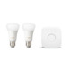 De Philips Hue White Ambiance Color set bestaat uit 2 Led lichtbronnen die je kunt instellen in de kleuren rood, groen, blauw en wit. Led is een energiezuinig alternatief voor halogeen. Je bespaart op je verlichtingskosten en deze gaat langer mee. De Philips Hue is dimbaar en is te bedienen met de Smarthome applicatie. Met een grote lichtopbrengst van 806 lumen en een perfecte lichtkleur, creëer jij de gewenste sfeer in huis. De lichtbron bevat een E27 fitting en past hiermee in veel armaturen. De verlichtingsbron heeft een wattage van 9.5Watt en valt onder energieklasse A+. Dit is één van de meest zuinige energieklasses. Kortom, de Philips Hue White Ambiance Color set is een prettige verlichtingsbron voor in huis.