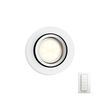 De Philips Hue White Ambiance Milliskin inbouwspot wit inclusief dimmer geeft een dimbaar warm tot koel licht voor elk dagelijks moment. Deze lamp kan worden toegevoegd aan je al bestaande Hue systeem of kan worden bediend met de meegeleverde dimmer. Met deze slimme GU10 lamp heb je dankzij de 50.000 wittinten altijd het juiste licht om te ontspannen, concentreren, lezen of energie opdoen.