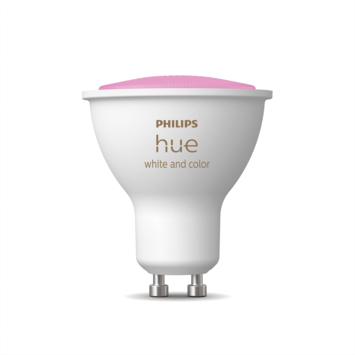 Met de Philips Hue White and Color Ambiance spot GU10 met bluetooth kies je voor wit en gekleurd licht. Met deze slimme lamp heb je dankzij de 50.000 wittinten altijd het juiste licht om te ontspannen, concentreren, lezen of energie opdoen. Daarnaast nog een spectrum van maar liefst 16 miljoen kleuren. Creëer in elke kamer van je huis, volledig je eigen persoonlijke sfeer met deze slimme Hue lamp.