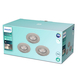 Deze drie nikkelkleurige Philips Dive inbouwspots voor de badkamer ogen modern. Het gelijkmatige, warmwitte LED-licht is zeer krachtig en toch aangenaam, ideaal voor bij het scheren of opmaken. Wilt u een wellnessgevoel creëren? Combineer de spotjes dan met de juiste dimmer en geniet van de rust. De drie inbouwspotjes bieden volgens hun IP65-classificatie bescherming tegen binnendringend vocht en zijn door de beperkte montagehoogte in de meeste standaard verlaagde plafonds weg te werken, ook recht boven douche of bad.