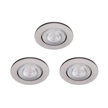 De drie nikkelkleurige Philips Taragon inbouwspotjes schijnen aangenaam warmwit LED-licht en zijn een aanwinst voor elk eigentijds interieur. Het aangename schijnsel van de verstelbare spotjes leent zich uitstekend om fraaie details in uw woning te benadrukken, maar werkt ook prima als extra verlichting voor snijwerk in de keuken. De spotjes zijn energiezuinig en gaan lang mee.