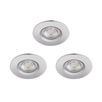 De drie chroomkleurige Philips Dive badkamerinbouwspotjes bieden een moderne uitstraling. Het gelijkmatige, warmwitte LED-licht is zeer krachtig en kan bovendien met de juiste dimmers worden gedimd. Door de beperkte hoogte kunnen de spotjes in bijna elk verlaagd plafond worden weggewerkt. Ook recht boven de douche of het bad omdat de spotjes beschikken over een IP65-classificatie, die aangeeft dat ze uitstekend geschikt zijn voor vochtige ruimtes.