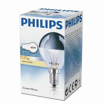 De Philips Kopspiegellamp 40W E14 fitting is een lamp die een spiegelend laagje voor de gloeidraad heeft zitten. Dit laagje kaatst het licht terug naar een reflector die achter de lamp is aangebracht. Bij een kopspiegellamp, ook wel karweilamp genoemd, heb je een armatuur met reflector nodig. Doordat de schittering van een zichtbare heldere gloeidraad zoals in open armaturen afwezig is, is deze lamp visueel comfortabel aan de ogen. Dit maakt de lamp geschikt voor klussen in een donkere omgeving waarbij je niet wilt dat het licht in je ogen schijnt, bijvoorbeeld een schilderklus in bij beperkt daglicht zoals in de donkere wintermaanden. Let op dat de lamp niet voor algemene huiskamerverlichting geschikt is. De Philips Kopspiegellamp 40W E14 fitting is er ook in de variant met grote E27 fitting.