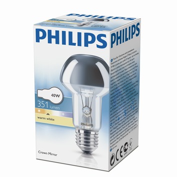 De Philips Kopspiegellamp 40W E27 fitting is een lamp die een spiegelend laagje voor de gloeidraad heeft zitten. Dit laagje kaatst het licht terug naar een reflector die achter de lamp is aangebracht. Bij een kopspiegellamp, ook wel karweilamp genoemd, heb je een armatuur met reflector nodig. Doordat de schittering van een zichtbare heldere gloeidraad zoals in open armaturen afwezig is, is deze lamp visueel comfortabel aan de ogen. Dit maakt de lamp geschikt voor klussen in een donkere omgeving waarbij je niet wilt dat het licht in je ogen schijnt, bijvoorbeeld een schilderklus in bij beperkt daglicht zoals in de donkere wintermaanden. Let op dat de lamp niet voor algemene huiskamerverlichting geschikt is. De Philips Kopspiegellamp 40W E27 fitting is er ook in de variant met kleine E14 fitting.