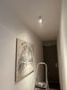 De basisplaat is smaller dan mijn plafondinbouwdoos, daarom een plastic blindplaat er onder gemaakt. Het monteren vergt wel 2x2 gaten boren in betonnen plafond en met precisie anders klikt de basisplaat er niet goed op.