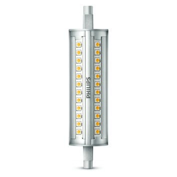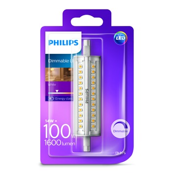 De Philips led 100W R7S dimbare lichtbron is de perfecte vervanger van de halogeen R7S lichtbron maar heeft als voordeel dat die veel langer mee gaat en een stuk zuiniger is in energie verbruik. Gemiddeld gaat deze lamp 15 jaar mee. De Philips lichtbron geeft een energiek cool licht (3000K) en heeft een lichtbundel van 300 graden.