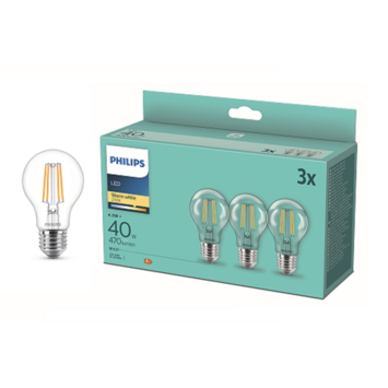 Deze drie peervormige energiezuinige Philips LED-lampen, met sfeervol warmwit licht, zijn ideaal om elke ruimte in huis te verlichten. Deze LED-lampen hebben dezelfde lichtopbrengst als een gloeilamp van 40 W maar verbruiken circa 80% minder energie dan traditionele lampen dankzij de nieuwste energiezuinige LED-technologie. Daarnaast gaan ze tien keer langer mee. Deze lampen hebben een E27-fitting, en passen dus in de meeste lampen met grote fitting.