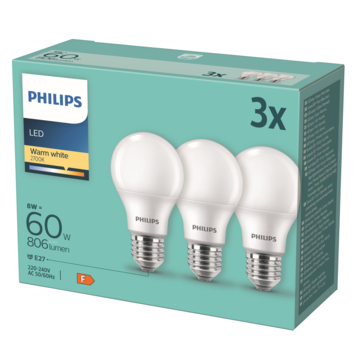 Deze drie peervormige energiezuinige Philips LED-lampen, met sfeervol warmwit licht, zijn ideaal om elke ruimte in huis te verlichten. Deze LED-lampen hebben dezelfde lichtopbrengst als een gloeilamp van 60 W maar verbruiken circa 80% minder energie dan traditionele lampen dankzij de nieuwste energiezuinige LED-technologie. Daarnaast gaan ze tien keer langer mee. Deze lampen hebben een E27-fitting, en passen dus in de meeste lampen met grote fitting.