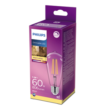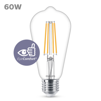 Vervang je oude lamp met een nieuwe energiezuinige Philips LED-lamp, met warmwit licht. Deze standaardlamp verbruikt circa 80% minder energie dan traditionele lampen dankzij de nieuwste energiezuinige LED-technologie en ze gaan tien keer langer mee. Met EyeComfort, voor licht dat aangenaam is voor jouw ogen. Deze lamp heeft een E27-fitting, en past dus in de meeste lampen met grote fitting.
