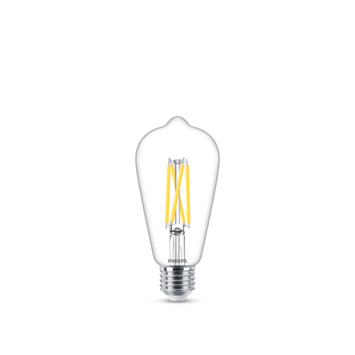 Met deze Philips WarmGlow LED filamentlamp dimt u uw dagelijkse verlichting tot de aangename tonen van gloeilampen, net zo sfeervol als vroeger. Hoe meer u dimt, hoe warmer het licht. Hierin onderscheiden deze LED's zich van andere dimbare LED-lampen, die alleen minder fel schijnen, wanneer ze worden gedimd. WarmGlow lampen tonen de ware kleuren van uw interieur, zoals bij natuurlijke verlichting. Of u nu 's avonds wilt ontspannen of fris aan de dag wilt beginnen, Philips WarmGlow LED's bieden het licht dat u nodig hebt. Deze lamp heeft een E27-fitting, en past dus in de meeste lampen met grote fitting.