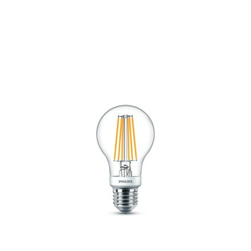 Deze Philips LED filament peer heeft een grote (E27) fitting en een vermogen van 60W.