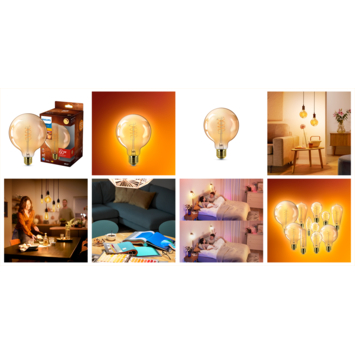 De Philips LED filamentlamp amberkleurig E27 60W dimbaar combineert een stijlvol vintage design met moderne LED-technologie. Deze decoratieve lamp met zichtbaar spiraalfilament is een echte blikvanger, zowel aan als uit. De warme amberkleurige afwerking en het zachte licht van 2200 K creëren een gezellige en uitnodigende sfeer in huis. Dankzij de dimfunctie pas je de lichtsterkte eenvoudig aan en bepaal je zelf de perfecte ambiance voor elk moment.