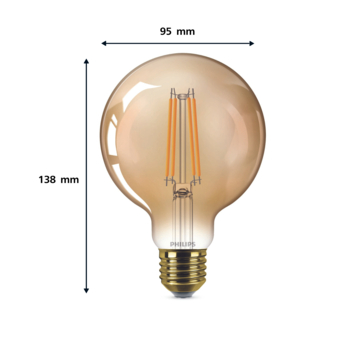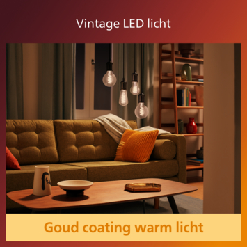Met deze Philips LED filamentlamp zorg je voor extra sfeer in huis. Ze zorgen voor een stijlvol lichtelement en geven sfeervol warmwit licht. Deze lamp heeft een gouden coating en in de lamp zie je een rechte lichtstaaf. Met EyeComfort, voor licht dat aangenaam is voor jouw ogen. De lamp heeft een E27-fitting, en past dus in de meeste lampen met grote fitting.