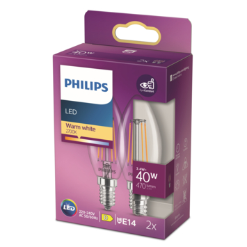 Vervang je oude kaarslamp met een nieuwe energiezuinige Philips LED-lamp, met warmwit licht. Deze lampen verbruiken circa 80% minder energie dan traditionele lampen dankzij de nieuwste energiezuinige LED-technologie en ze gaan tien keer langer mee. Met EyeComfort, voor licht dat aangenaam is voor jouw ogen. Deze lampen hebben een E14-fitting en zijn vaak geschikt voor tafellampen of lusters.