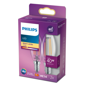 Philips LED kaars E14 duopack filament helder niet dimbaar
