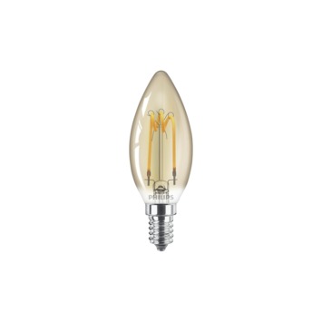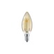 De Philips LED-filament kaars E14 2,3W=14W is een lamp die er zowel aan als uit goed uit ziet. Deze decoratieve lichtbron past door de goud kleur goed bij een transparant armatuur. Met een lichtopbrengst van 125 lumen is dit een echte sfeermaker. Door de LED technologie verbruikt deze lamp tot 80% minder energie dan traditionele lampen en gaat tot 10 keer langer mee.