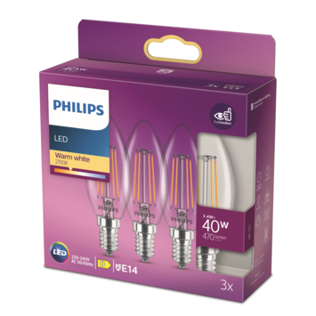 Het EyeComfort-label garandeert licht dat prettig is voor de ogen en vrij is van flikkeringen en verblinding. Deze set bestaat uit drie kaarslampen met een elegant slank ontwerp, perfect geschikt voor decoratieve armaturen waar stijl en functionaliteit samenkomen.