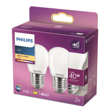 Philips LED kogel E27 3,4W 2 stuks mat niet dimbaar