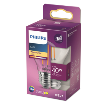 Vervang uw oude kleine kogellamp met een nieuwe energiezuinige Philips LED-lamp, met warmwit licht. Deze lamp verbruikt circa 80% minder energie dan traditionele lampen dankzij de nieuwste energiezuinige LED-technologie en ze gaan tien keer langer mee. Met EyeComfort, voor licht dat aangenaam is voor uw ogen. Deze lamp heeft een E27-fitting, en past dus in de meeste lampen met grote fitting.