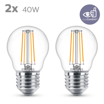 Philips LED kogel E27 duopack filament helder niet dimbaar