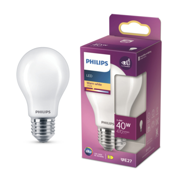 Vervang uw oude lamp met een nieuwe energiezuinige Philips LED-lamp, met warmwit licht. Deze standaardlamp verbruikt circa 80% minder energie dan traditionele lampen dankzij de nieuwste energiezuinige LED-technologie en ze gaan tien keer langer mee. Met EyeComfort, voor licht dat aangenaam is voor uw ogen. Deze lamp heeft een E27-fitting, en past dus in de meeste lampen met grote fitting.