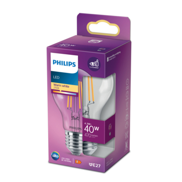 Vervang uw oude lamp met een nieuwe energiezuinige Philips LED-lamp, met warmwit licht. Deze standaardlamp verbruikt circa 80% minder energie dan traditionele lampen dankzij de nieuwste energiezuinige LED-technologie en ze gaan tien keer langer mee. Met EyeComfort, voor licht dat aangenaam is voor uw ogen. Deze lamp heeft een E27-fitting, en past dus in de meeste lampen met grote fitting.