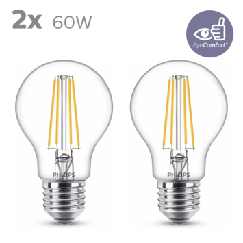 Philips LED peer E27 60W 2 stuks filament helder niet dimbaar