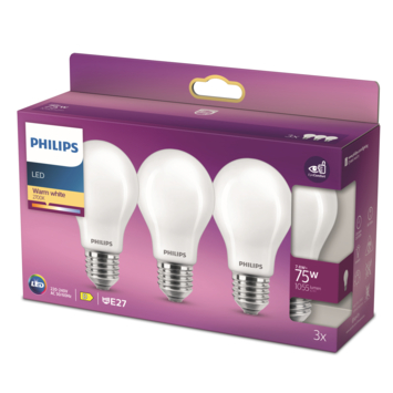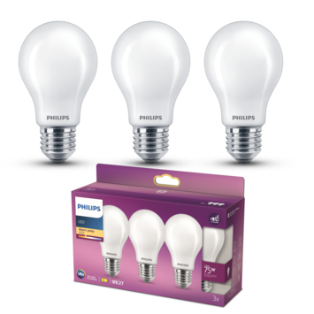 De Philips LED peerlamp mat E27 75W warmwit licht 3 stuks brengt sfeervolle en energiezuinige verlichting in huis. Deze matte LED-lampen verbruiken tot 90% minder energie dan traditionele gloei- en halogeenlampen en hebben een veel langere levensduur. Met een standaard E27-fitting passen ze moeiteloos in de meeste armaturen en zijn ze eenvoudig te installeren. Dankzij het gebruik van moderne LED-technologie bespaar je tot €30 per lamp per jaar op energiekosten.