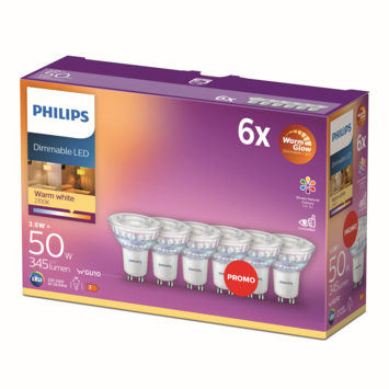 Philips LED spot GU10 50W 6 stuks warmglow dimbaar