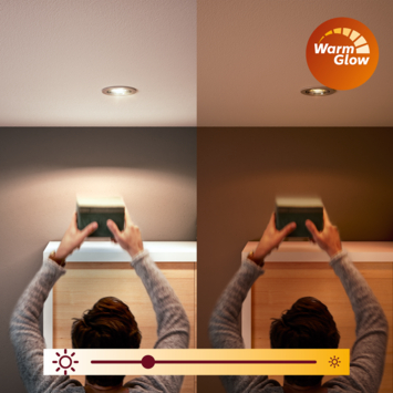 Met deze Philips WarmGlow LED-spots dim je jouw dagelijkse verlichting tot de aangename tonen van gloeilampen, net zo sfeervol als vroeger. Hoe meer je dimt, hoe warmer het licht. Hierin onderscheiden deze LED's zich van andere dimbare LED-lampen, die alleen minder fel schijnen wanneer ze worden gedimd. WarmGlow lampen tonen de ware kleuren van jouw interieur, zoals bij natuurlijke verlichting. Of je nu 's avonds wilt ontspannen of fris aan de dag wilt beginnen, Philips WarmGlow LED's bieden het licht dat je nodig hebt. Met EyeComfort, voor licht dat aangenaam is voor jouw ogen. Deze lampen hebben een GU10-fitting en gaan vaak perfect samen met jouw in- of opbouwspots.