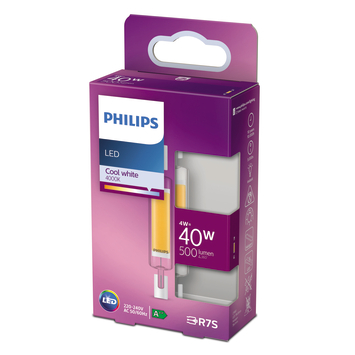 Vervang uw oude R7S-lamp met een nieuwe energiezuinige Philips LED-lamp, met koelwit licht. Deze lamp verbruikt circa 80% minder energie dan traditionele lampen dankzij de nieuwste energiezuinige LED-technologie. Bovendien gaan ze tien keer langer mee. Deze lamp heeft een R7S-fitting.