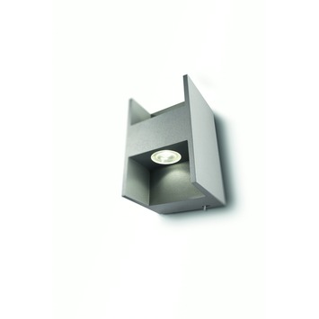 De Philips Ledino wandlamp Metric grijs is een moderne wandlamp. designlamp straalt krachtig warm wit licht in twee richtingen. Daarnaast is de wandlamp energiebesparend en heeft de lamp een lange levensduur. Ook heeft de lamp een aan/uit schakelaar op het armatuur. De lamp is gemaakt van aluminium, heeft een grijze kleur en is 11,9 bij 7,4 centimeter groot. De wandlamp wordt geleverd inclusief twee LED-lichtbronnen van 2 watt.