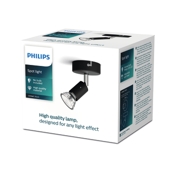 Zet je interieur in het juiste licht met de Philips Essentials Limbali opbouwspot. Kantel deze praktische spot in de juiste richting en creëer zo een lichtaccent in jouw interieur. Voor het mooiste lichteffect combineer je de Limbali met een dimbare energiezuinige Philips LED-lamp met GU10-fitting. Speciale kenmerken: Draaibare spot, laat het licht schijnen waar je het wilt door de spot te draaien of te kantelen. Deze armatuur wordt geleverd zonder lamp, waardoor je de lichtopbrengst kunt kiezen die het beste bij de kamer en jouw persoonlijke smaak past. Wanneer je voor een Philips LED-lamp kiest, kies je voor hoogwaardig en energiezuinig licht. Metaal van hoogwaardige kwaliteit voor een mooie afwerking. Ook verkrijgbaar in 2- en 3-lichts opbouwspots.