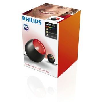 De Philips LivingColors Micro zwart is een tafellamp met een zwarte afwerking die een gekleurd, diffuus licht verspreidt. De kleur van het licht kan je zelf instellen. Je kan hierbij kiezen uit 64 kleuren. Of druk de knop in en laat de kleuren automatisch veranderen. Met de Philips LivingColors Micro zwart haal je een trendy lamp in huis voor die nog jaren garant staat voor sfeerverlichting.