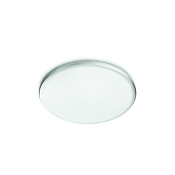 De Philips myLiving wand- en plafondlamp Twirl klein grijs is een energiezuinige en duurzame lamp. Je kunt de lamp zowel als wandlamp en als plafondlamp gebruiken. De lamp vult je kamer gelijkmatig met warm licht. De wand- en plafondlamp heeft een witte kunststof kap met een grijze rand en heeft een diameter van 35 centimeter. De lamp wordt geleverd met een lichtbron van 16 watt.