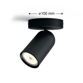 De Philips myLiving opbouwspot uit de serie Pongee is een mooie, moderne spot voor in jouw interieur. De lamp is voorzien van een draaibare spot, waardoor de lamp perfect af te stellen is in de gewenste richting. De zwarte kleur maakt deze spot passend in iedere ruimte. Deze spot wordt geleverd exclusief lichtbron. Kies bijvoorbeeld voor een WarmGlow LED-lichtbron en geef jouw ruimte extra sfeer. Hoe meer je dimt met WarmGlow, hoe warmer het licht. Op zoek naar een andere kleur? De Pongee serie is naast zwart ook verkrijgbaar in wit.