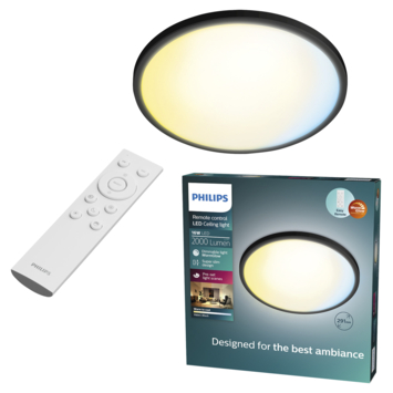 Philips plafondlamp Valen zwart 16W met afstandsbediening dimbaar