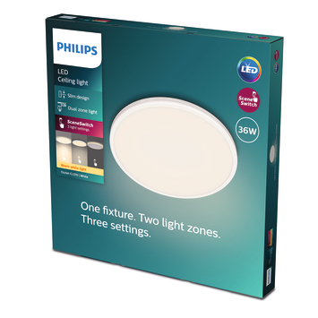 De strakke ronde lijnen van de Ozziet plafondlamp geven je kamer een moderne uitstraling. Deze witte plafondlamp met ultradun ontwerp geeft zowel aan de onderkant als zijkant licht voor een prachtig egaal lichteffect. Met de drie SceneSwitch-lampinstellingen kun je in elke ruimte de perfecte sfeer creëren. Gebruik je bestaande lichtschakelaar om de lamp op 100%, 40% of 10% helderheid in te stellen. De Ozziet plafondlamp ziet er zowel aan als uit mooi uit.