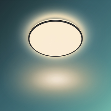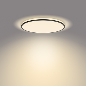 De strakke ronde lijnen van de Ozziet plafondlamp geven je kamer een moderne uitstraling. Deze plafondlamp met zwarte rand en ultradun ontwerp geeft zowel aan de onderkant als zijkant licht voor een prachtig egaal lichteffect. Met de drie SceneSwitch-lampinstellingen kun je in elke ruimte de perfecte sfeer creëren. Gebruik je bestaande lichtschakelaar om de lamp op 100%, 40% of 10% helderheid in te stellen. De Ozziet plafondlamp ziet er zowel aan als uit mooi uit.