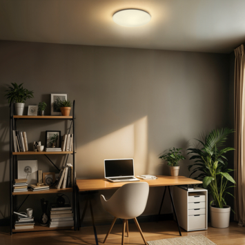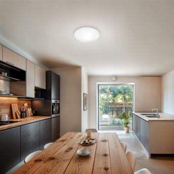 Deze plafonnière heeft een geïntegreerde LED-lamp van 12 W met een warm wit licht (2700 K) welke gemiddeld een levensduur van zo'n 20 jaar heeft. De lamp heeft een diameter van 26 cm en een hoogte van 8 cm.