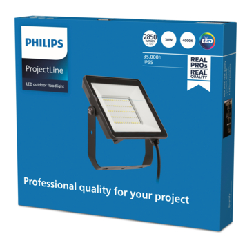 Waterdichte, robuuste LED's voor buitenshuis. Projectline-schijnwerpers besparen energie en zijn robuust dankzij hun aluminium behuizing. Ideaal voor het verlichten van terreinen aan de voor- of achterkant van (openbare) gebouwen, zoals parkeerplaatsen, opritten, tuinen of werkterreinen.