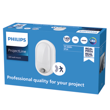 Energiezuinige LED-muurlampen voor zowel binnen als buiten, van professionele kwaliteit. ProjectLine-verlichting voor wandmontage helpt bij het besparen van energie en kan worden gemonteerd aan de wand of aan het plafond. Ideaal voor gangen, (openbare) entrees, voordeurlampen en trappenhuizen dankzij het krachtige natuurlijk wit licht en ingebouwde bewegingssensor.