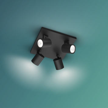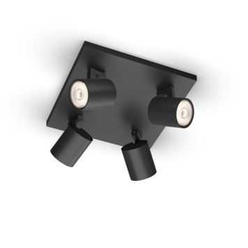 De Philips Runner 4-lichts opbouwspot heeft een industriële stijl, is klein van formaat en past perfect in elk modern interieur. Deze subtiele zwarte plafondlamp met draaibare spots is perfect voor elke ruimte in huis. Richt het licht precies waar jij het nodig hebt. Ook verkrijbaar in 1- 2- en 3-lichts opbouwspots.
