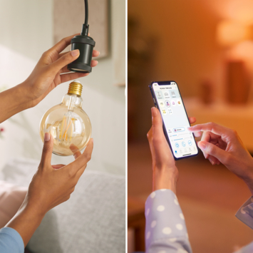 De bolvormige Philips Smart LED filamentlamp met gouden kleur en E27-fitting is een mooie manier om een vintage stijlelement aan je interieur toe te voegen. De lamp is eenvoudig te bedienen via de WiZ app. Dim de lamp, zet hem feller, selecteer een andere wittint of kies één van de voorgeprogrammeerde lichtscènes. Stel bijvoorbeeld een 24-uurs ritme in en word wakker met koel licht om met wat extra energie aan de dag te beginnen. 's Avonds laat wordt het licht automatisch wat warmer, zodat je lekker ontspannen onder de wol kunt kruipen. Ontdek nog veel meer ritmes en scènes, waar je elke dag wat aan hebt. Gemakkelijk te bedienen via je eigen wifinetwerk met de WiZ app of je stem.