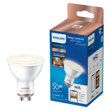 Maak de standaard inbouwlampen en spotjes in je huis slim met de dimbare, warmwitte gloed van de Philips Smart LED GU10-spot. De lamp is eenvoudig te bedienen via de WiZ app. Dim het licht om het extra gezellig te maken als er bezoek is. Zet het licht feller als de kinderen huiswerk moeten maken of als je gaat lezen. Je kunt scènes maken om gemakkelijk meerdere lampen in een kamer te bedienen, je kunt de lampen zelfs automatisch laten in- en uitschakelen door ritmes in te stellen. Gemakkelijk te bedienen via je eigen wifinetwerk met de WiZ app of je stem.