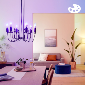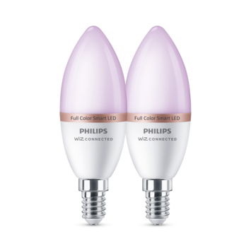 Geef je huis sfeer met deze twee gekleurde Philips Smart LED kaarslampen met E14-fitting. De lampen zijn eenvoudig te bedienen via de WiZ app. Zo kun je de lampen gemakkelijk dimmen, feller zetten of één van de voorgeprogrammeerde lichtscènes kiezen. Gebruik ritmes om je lampen op bepaalde tijden automatisch van wittint of kleur te laten veranderen. Je kunt de ritmes naar wens aanpassen door verschillende dynamische lichtscènes te combineren. Wat dacht je van lampen die doen denken aan knus kaarslicht, een zomerse dag of een prachtige oranje zonsondergang? Gemakkelijk te bedienen via je eigen wifinetwerk met de WiZ app of je stem.