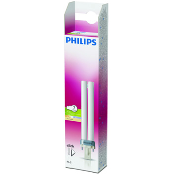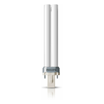 De Philips spaarlamp staaf PL-S 7W (= 40W) is een spaarlamp die geschikt is voor een G23 fitting. Dankzij het gebruik van spaarlamptechnologie heeft deze lamp ondanks het lage energieverbruik een lichtopbrengst van 400 lumen en een vermogen van 7 watt. De warm witte kleur zorgt voor aangenaam warm en natuurlijk licht. Met een levensduur van 10.000 uur gaat deze lamp lang mee.