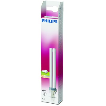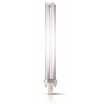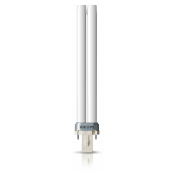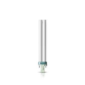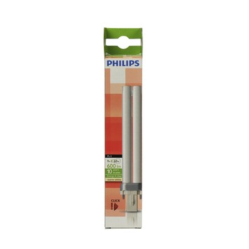 De Philips spaarlamp staaf PL-S 9W (=60W) (= 60W) is een spaarlamp die geschikt is voor een G23 fitting. Dankzij het gebruik van spaarlamptechnologie heeft deze lamp ondanks het lage energieverbruik een lichtopbrengst van 600 lumen en een vermogen van 9 watt. De warm witte kleur zorgt voor aangenaam warm en natuurlijk licht. Met een levensduur van 10.000 uur gaat deze lamp lang mee.